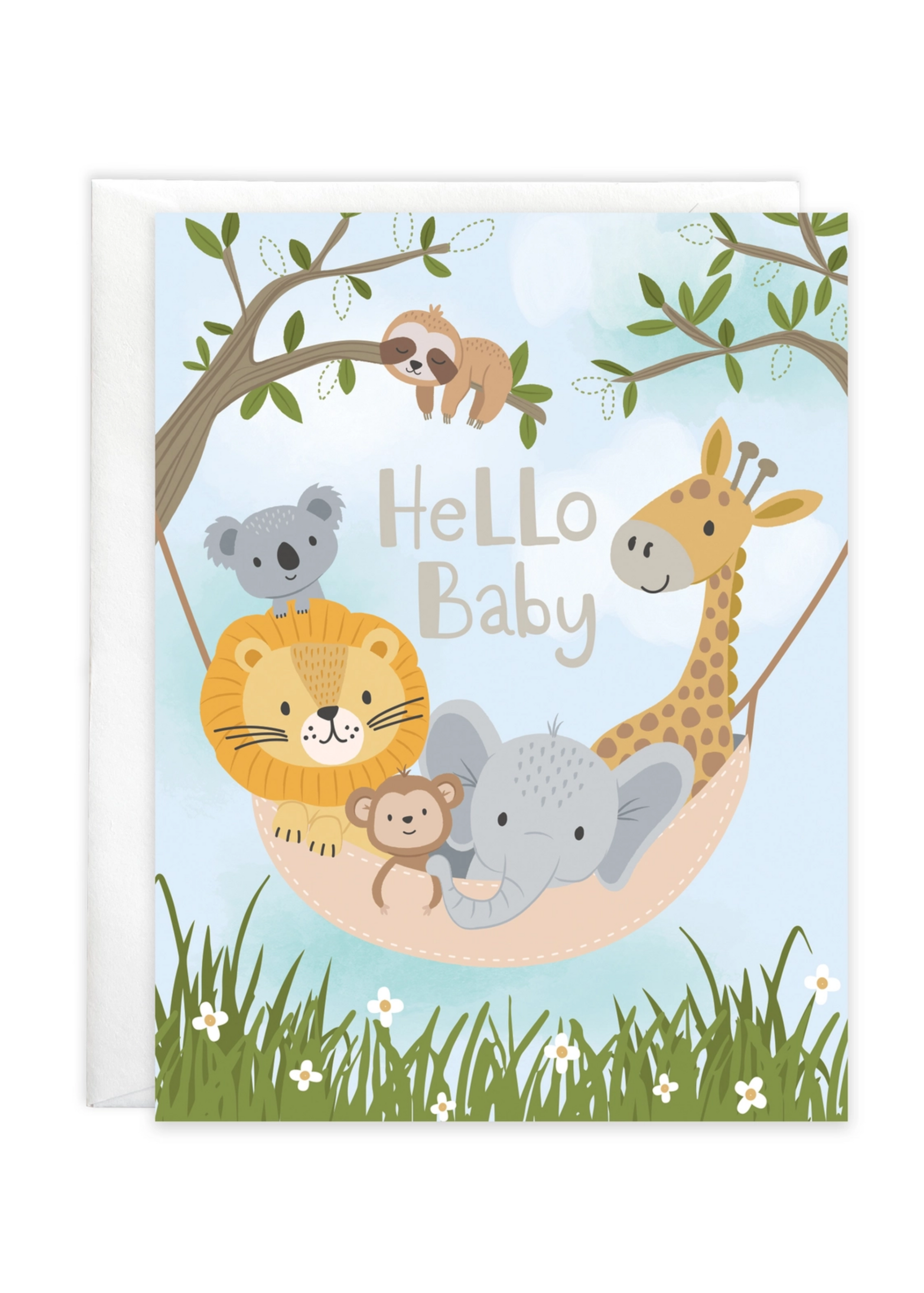 Greeting card with envelope Hello Baby So happy for you and your family Congratulations! Folded size: 4.25" x 5.5" (A2). Proudly made in the U.S.A.