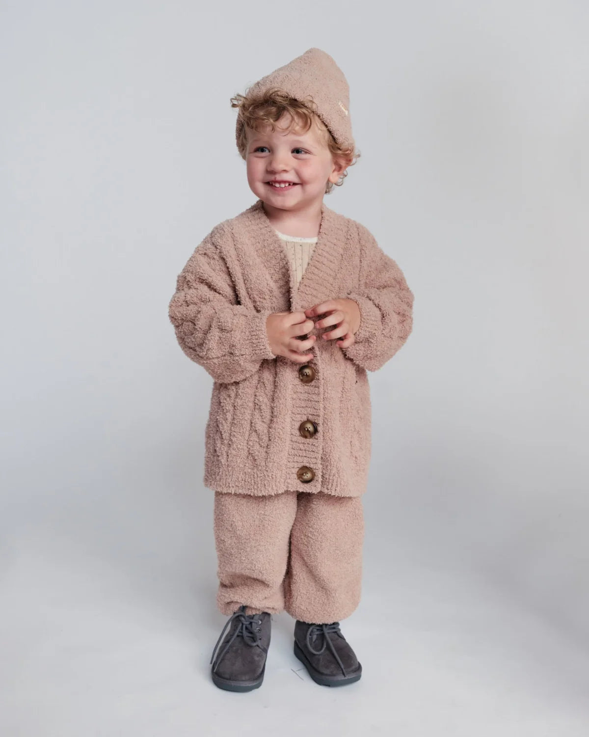 The Fuzzy Cable Cardigan is the epitome of cozy elegance. Made from 100% recycled materials, this cardigan offers a relaxed loose fit and features a button-down front, making it easy to layer over any outfit. Eco-friendly, cushy, and warm, this will be your grab & go essential sweater for the cold season.