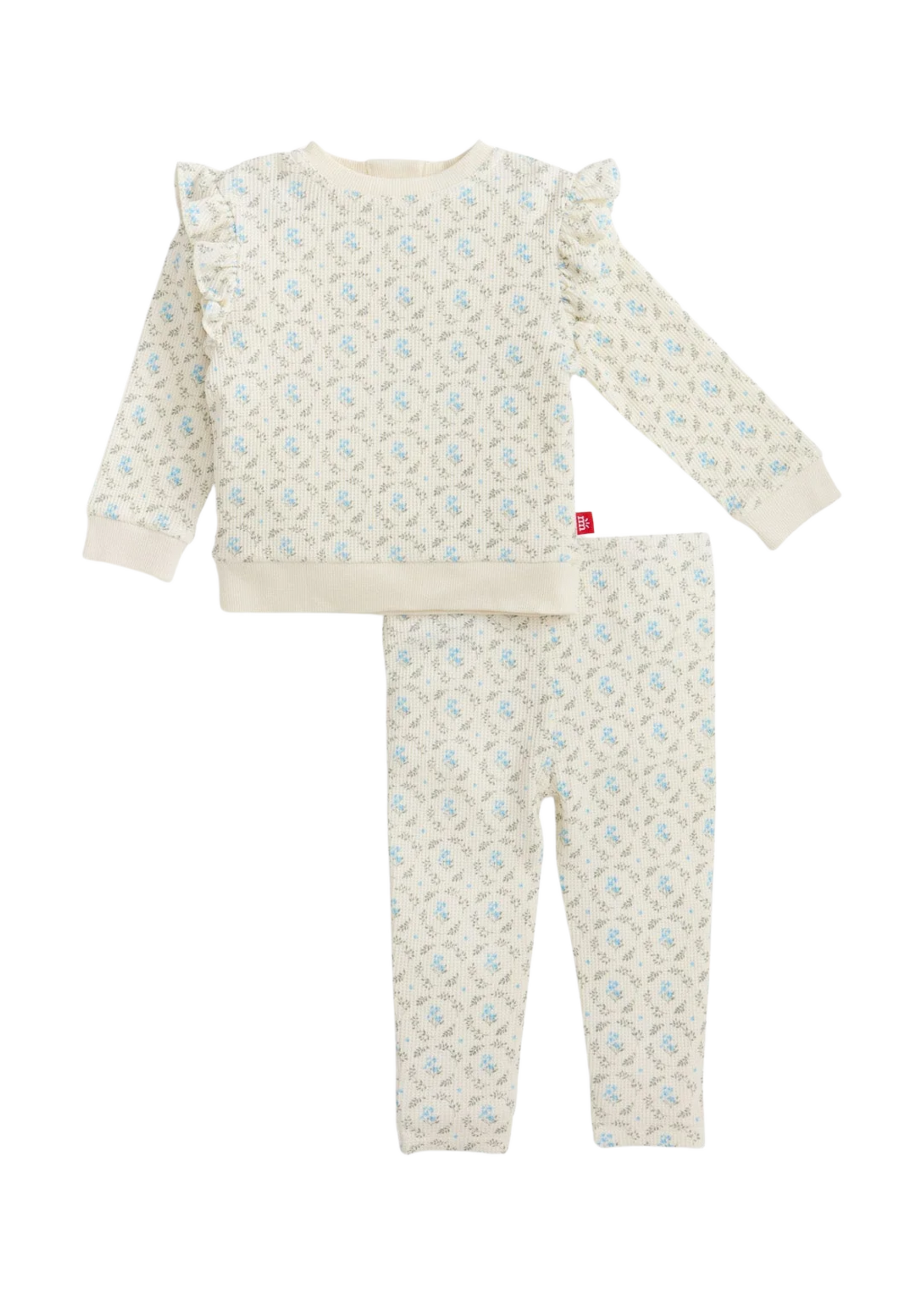 This Top & Legging Set is designed with a magnetic closure on the top that expands the neckline for faster over-the-head dressing, while stretchy bottoms speed up diaper changes. With whimsical flutter sleeves and the cozy texture of waffle modal, it's designed for baby to wear out and about—but it’s just as comfy as our pjs.