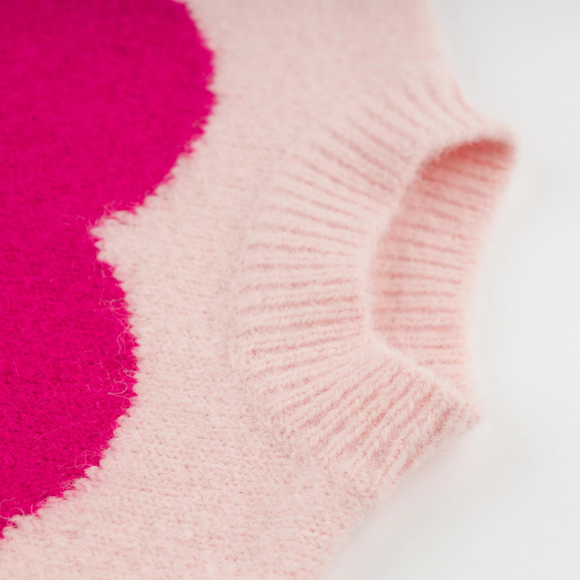 The Giant Hearts Grandpa Knitted Pullover by Oh Baby! is the perfect blend of cozy comfort and playful charm. In a soft pink color, it features a bold hot pink heart at the center, bringing warmth and joy to every outfit. Designed with a subtly high neck and long sleeves, this pullover wraps your little one in softness, while the super plush knit makes it ideal for layering on chilly days. Casual, cute, and irresistibly snuggly, it’s a pullover that combines timeless style with a touch of heartwarming whimsy.