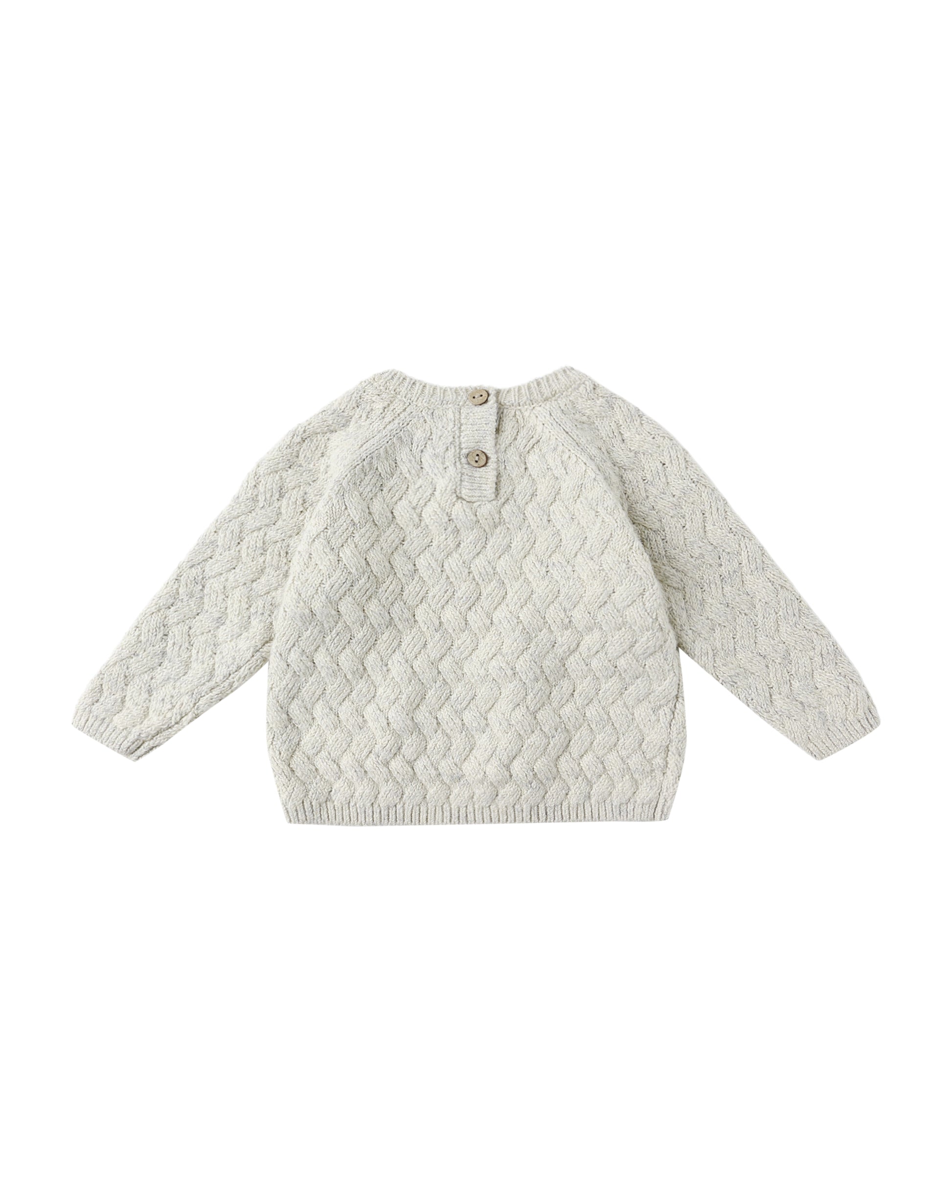 Cozy Knit Sweater with ribbed neck, cuffs, and waist, featuring a two-button back placket for easy changes. Pair with our Knit Pants to complete the look.