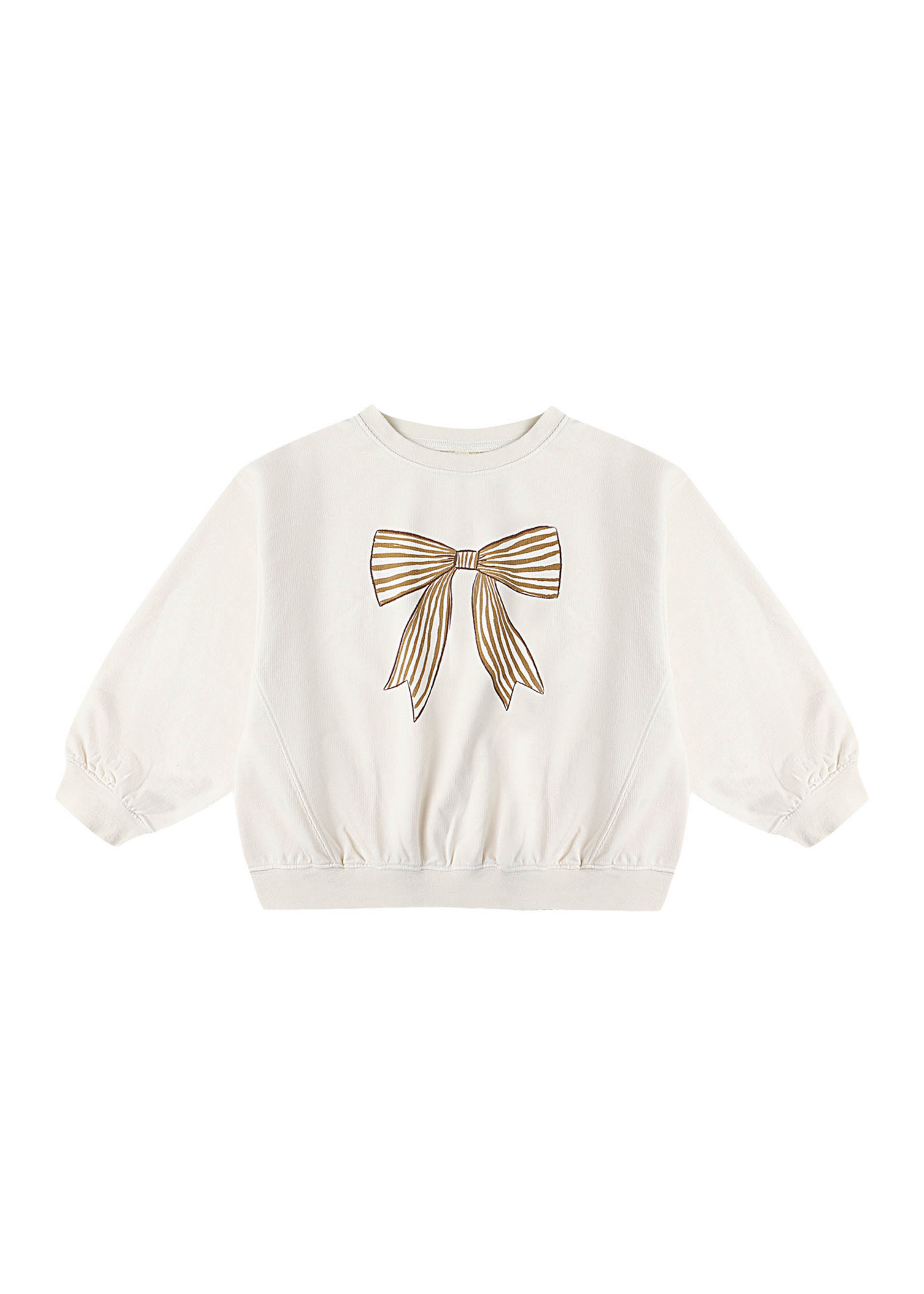 This cream-colored oversized sweatshirt combines comfort with a stylish touch, featuring a distinctive bow detail that adds subtle elegance. Its relaxed fit ensures ease of movement and cozy wear, making it an ideal choice for casual outings or lounging. Crafted to balance softness and durability, this sweatshirt elevates everyday basics with a refined, expert design.