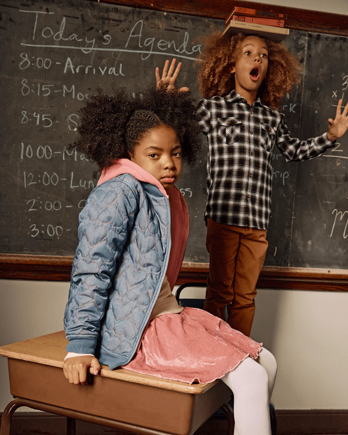 The Queens Bomber in Blue Prism is a must-have for your little trendsetter! With its playful pink hood and cozy blue heart quilted exterior, this jacket blends style and comfort perfectly. The zippered closure keeps the chill out, while the handy pockets are perfect for stashing all their treasures. Whether they’re off to school or hitting the playground, this bomber jacket is as versatile as it is fun. Parents will love the quality craftsmanship and easy wear, while kids will feel extra cool in this standout piece. A bold look with a dash of heart—what’s not to love?