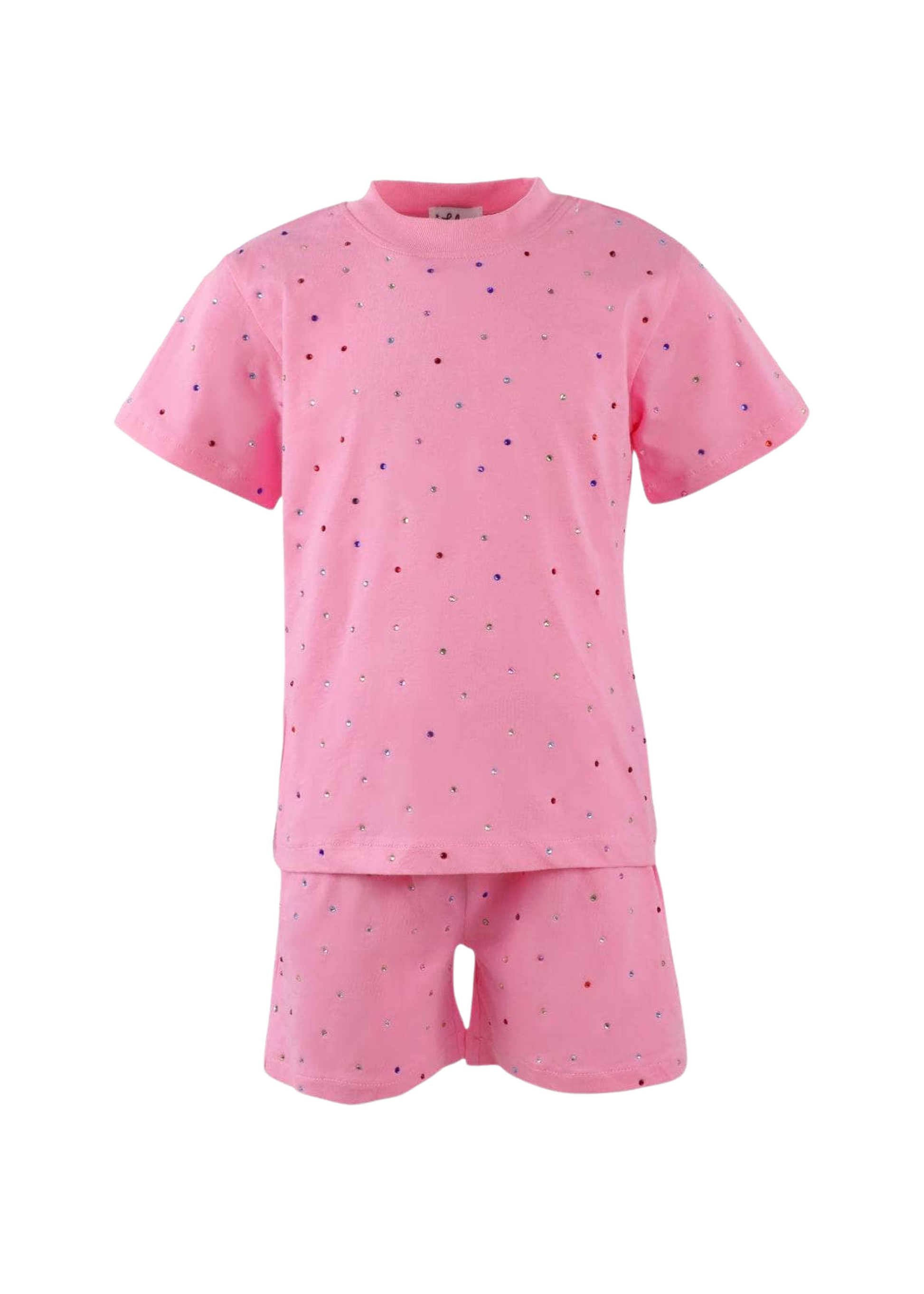 - Add sparkle to summer days with theRainbow Gem Short Set, available in soft pink or classic white, adorned with colorful gem accents.