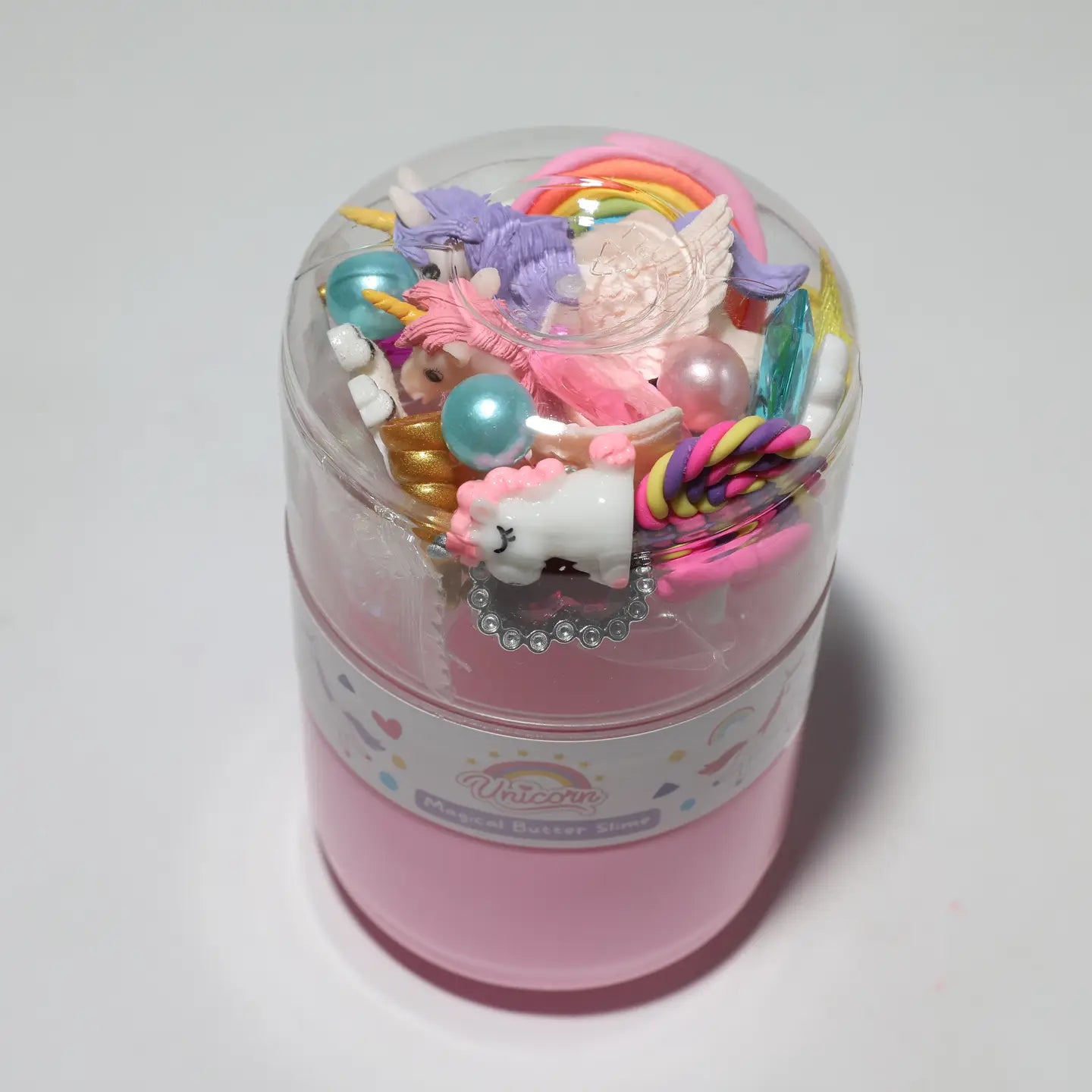 Amazing slime Jar ! super stretchy and non sticky the best feel for less mess! Butter slime in one jar included in plain color perfect for the mix ins and sensory feel. Mix ins included on one side of the jar along with the amazing themed charms and figurines. this top seller will drive back clients over and over its the perfect gift shop item!