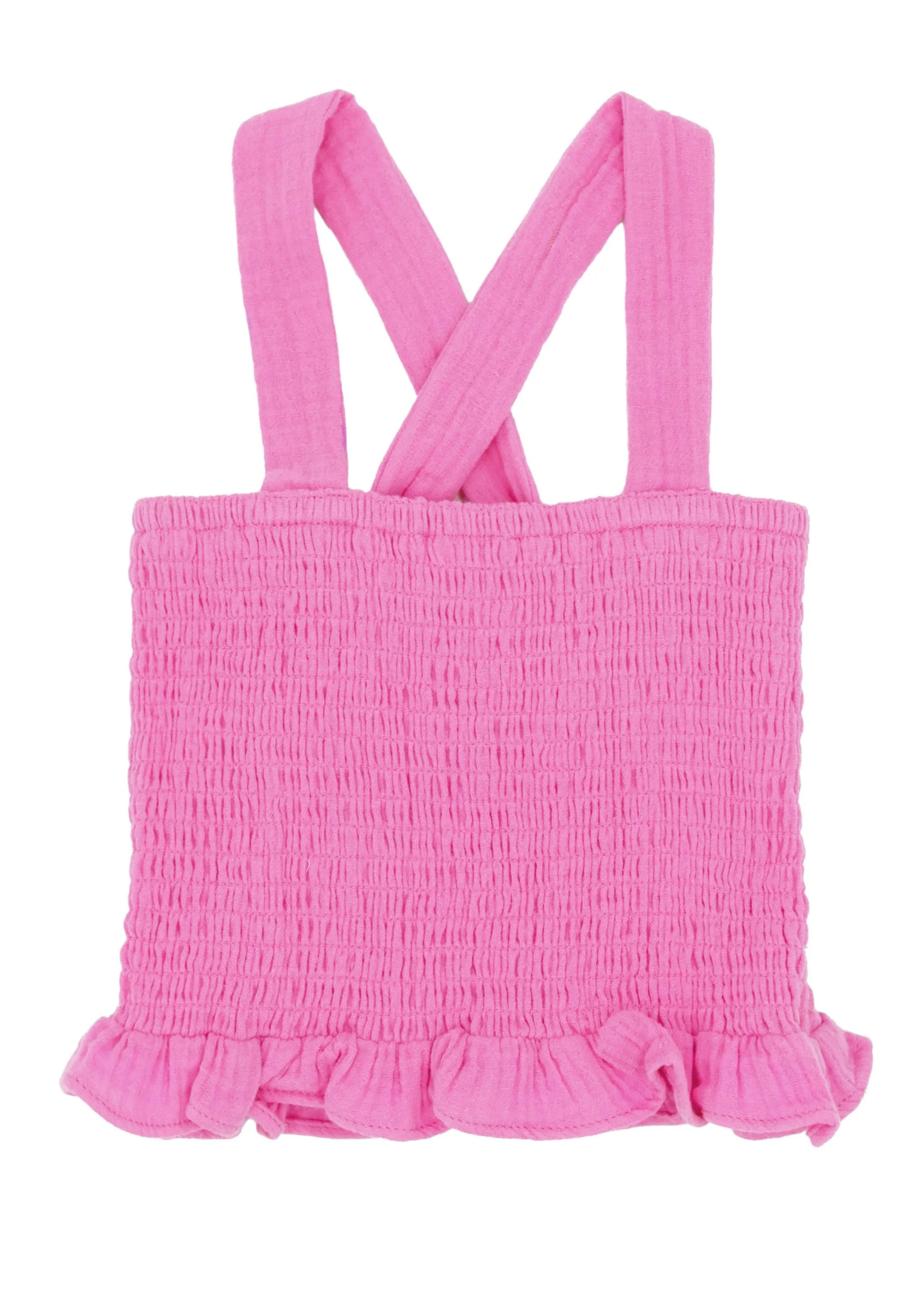- Detail: Smocked top with ruffle at hem